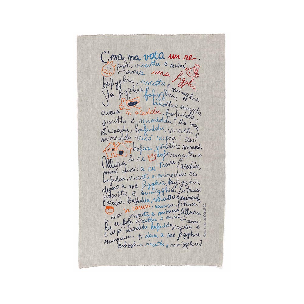 The Bafè tapestry is a versatile and colorful home accessory, hand-printed on natural fabric made of a linen-cotton blend. Perfect for adding a lively and playful touch inspired by the legends of the Mediterranean region to any space. This tapestry can be easily hung on the wall with a large wooden frame.