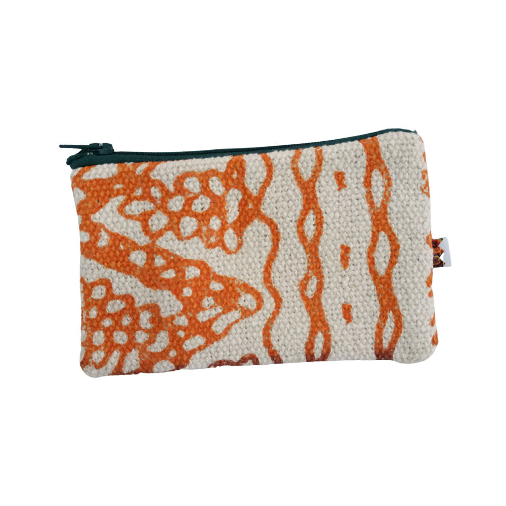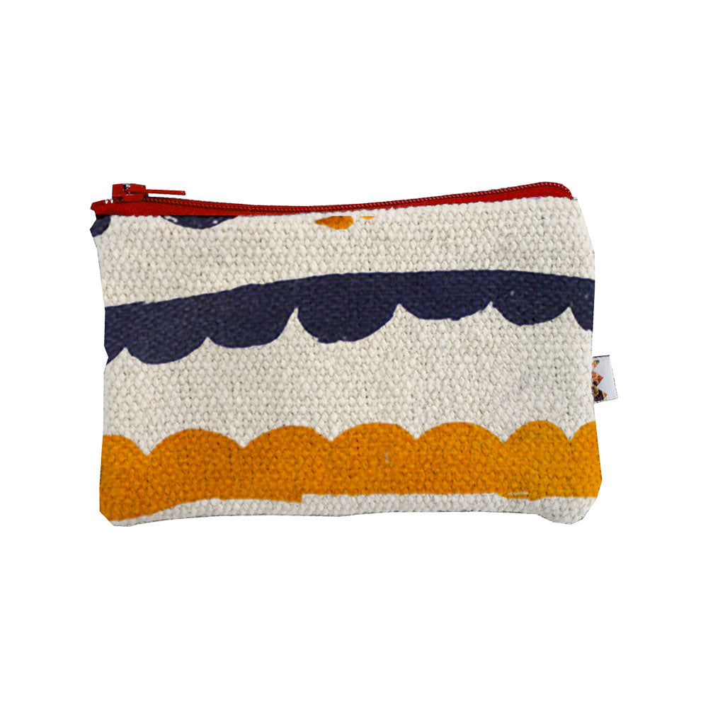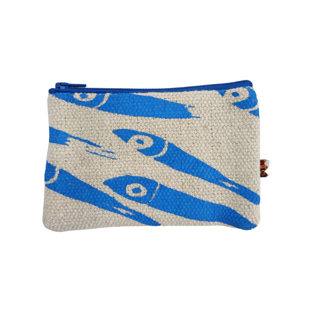 Multi-purpose keychain decorated with hand-printed screen printing. Practical and handy, it has been designed in the shape of a small pouch, for easy use as a coin purse. The keychain hook is inserted inside the pouch.