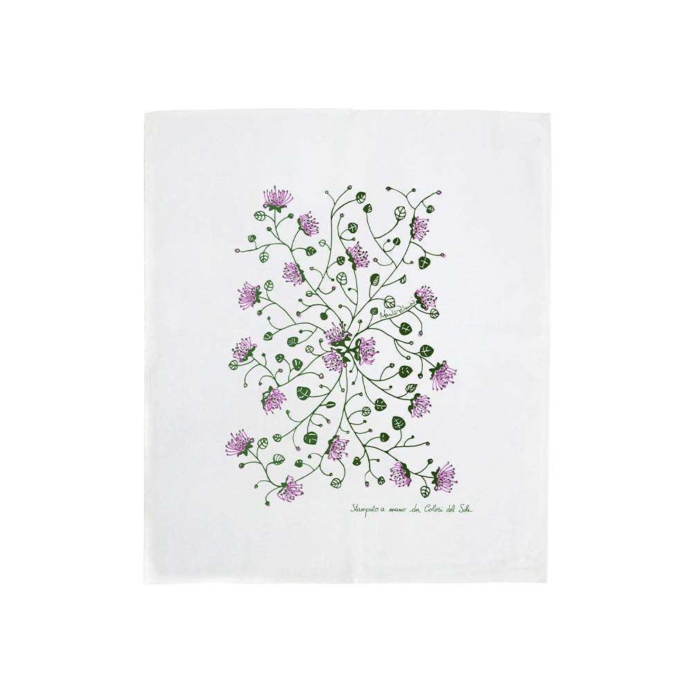 When design meets nature, objects are born that tell stories of authenticity and local heritage. The Cappero tea towel brings the essence of the Mediterranean scrub into the kitchen, with delicate tones and patterns inspired by the iconic plant of the southern islands. Made from natural linen and hand-printed, each piece is unique: the artisanal print penetrates the fabric fibers, enhancing the texture and adding character and material depth. A detail that blends functionality and beauty, for those who love to surround themselves with quality and roots.