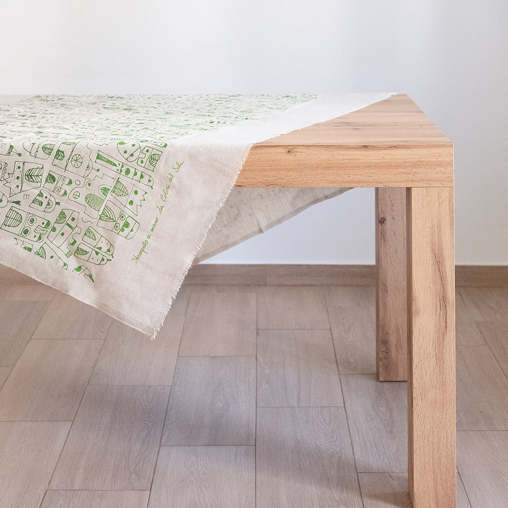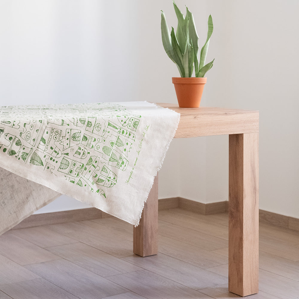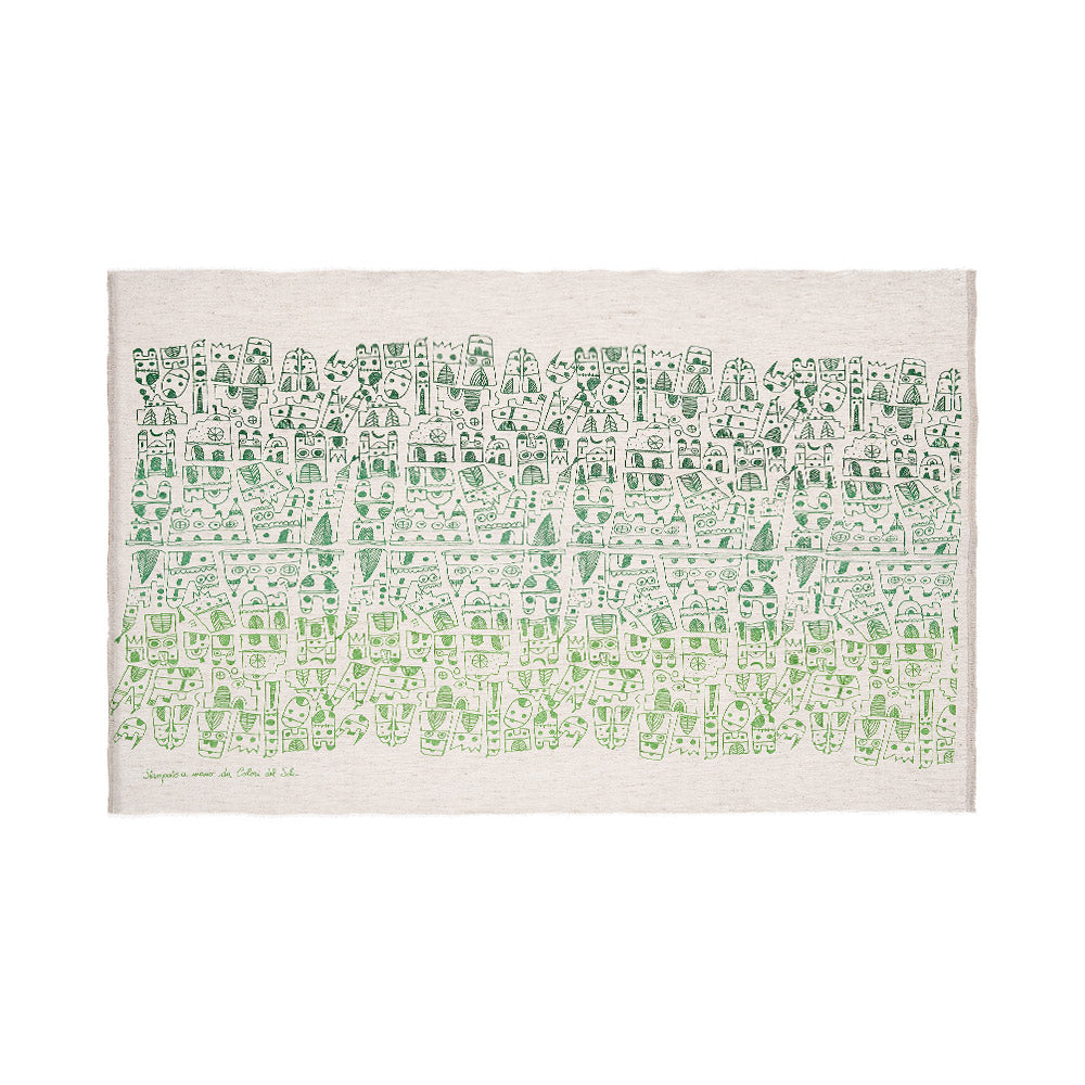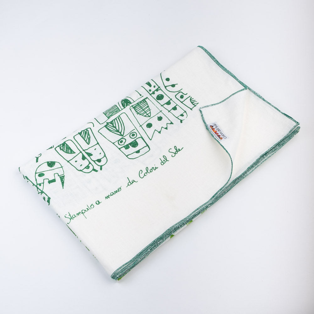 The Casuzze beach towel is a vibrant and colorful handmade product. Made of a linen-cotton blend fabric and silk-screen printed with non-toxic water-based colors. Available in blue and green.