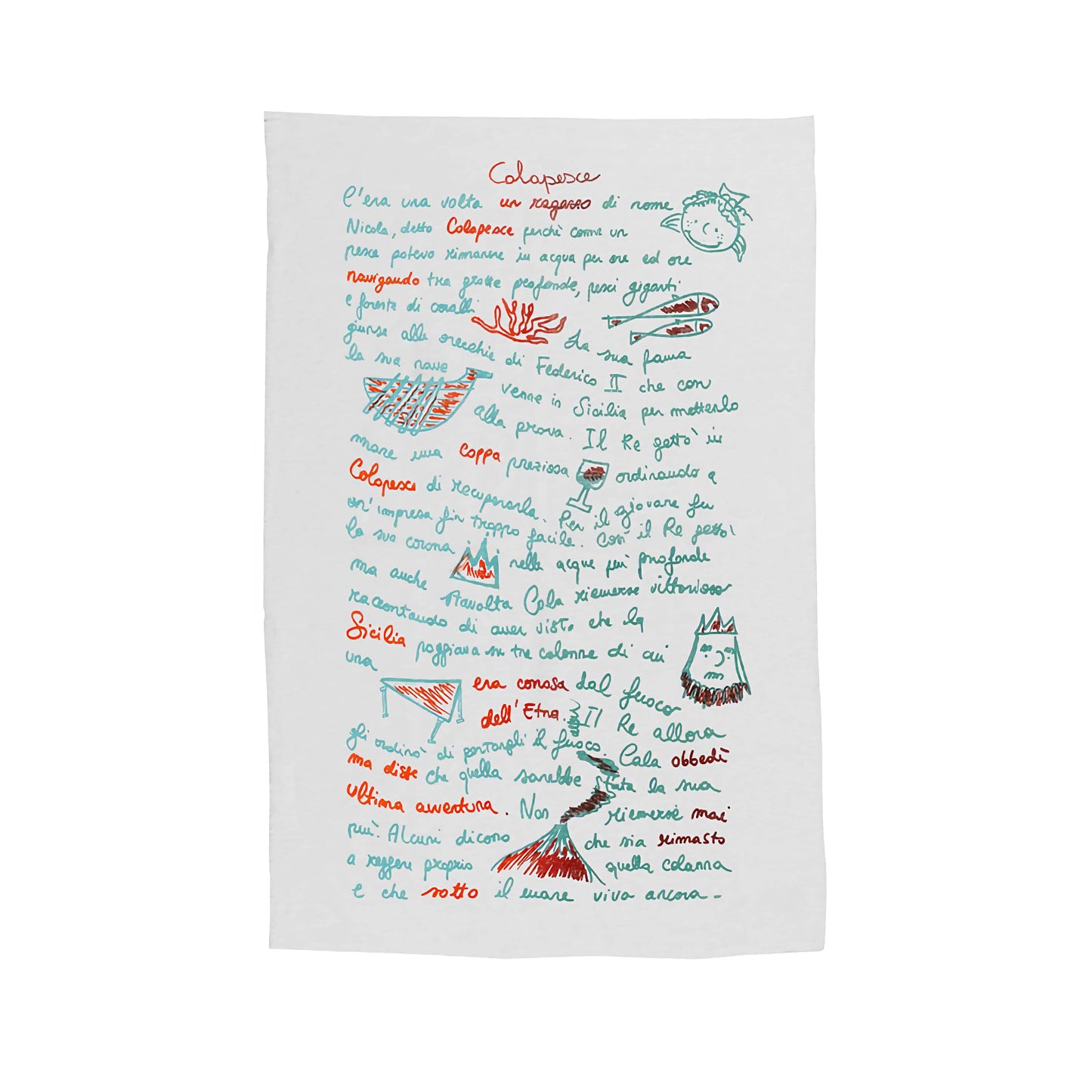 The Colapesce tapestry is a versatile and colorful home accessory, hand-printed on natural fabric. Perfect for adding a lively and playful touch to any space. This tapestry can be easily hung on the wall with a large wooden frame.