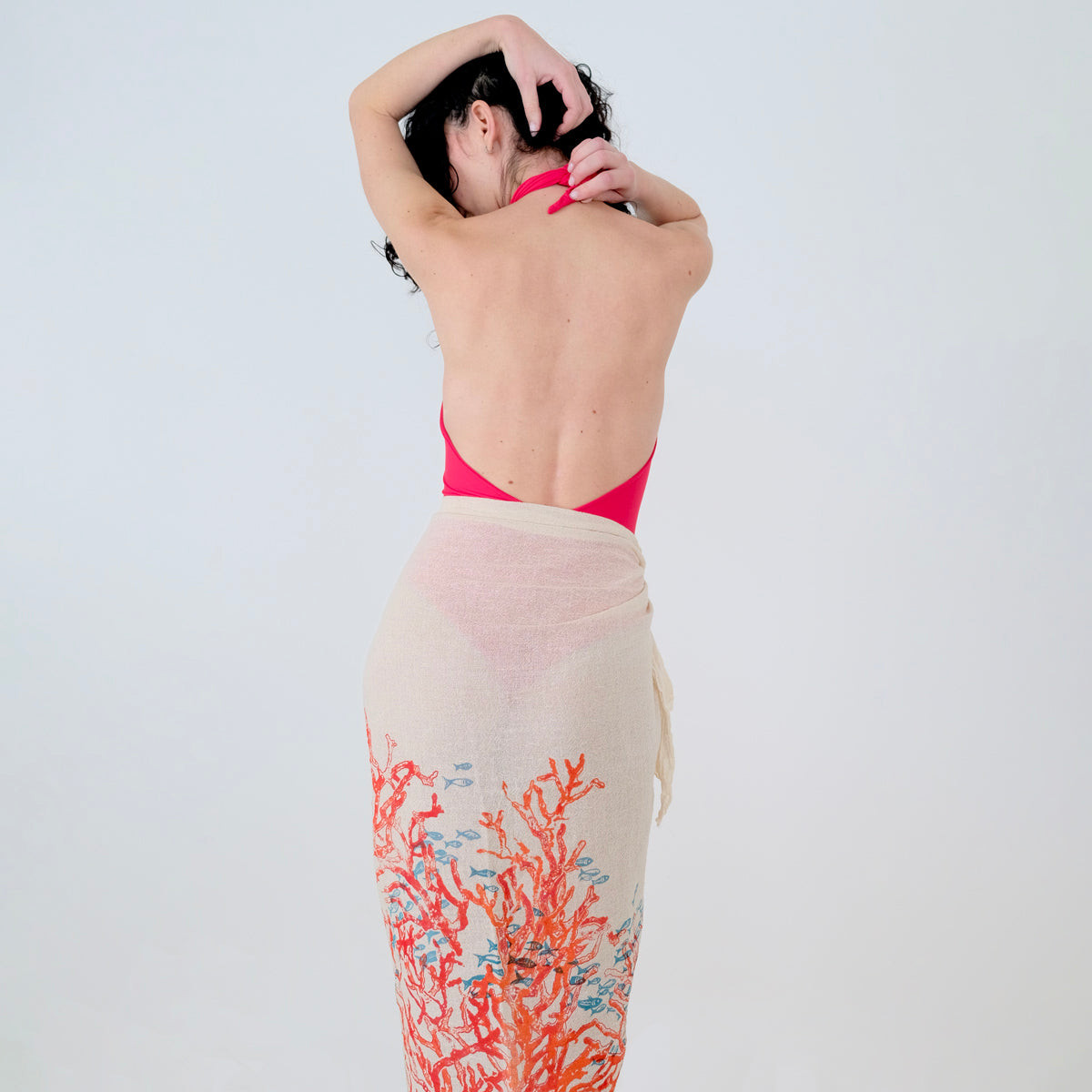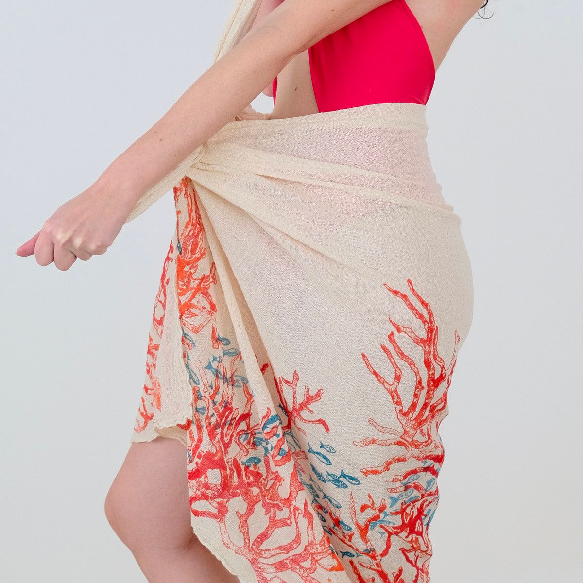 Hand-printed cotton pareo using traditional screen-printing techniques. A must-have for a colorful and stylish beach look.