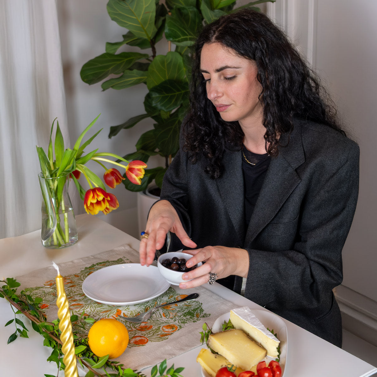 Set of two placemats in pure linen, decorated with a hand screen-printed design featuring delicate orange branches in refined shades of orange and green. A pattern that evokes the scents and colors of winter fruits, bringing natural elegance and brightness to your table. The artisanal craftsmanship enhances the quality of the linen and the vibrancy of the print, creating a piece that conveys warmth, harmony, and Mediterranean freshness — perfect for enriching your home during the winter season.