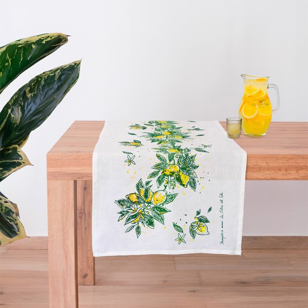 Experience the Mediterranean atmosphere with the Limoni pure linen table runner. This runner combines the elegance of hand-printed linen with the practicality of daily use. The fibers of natural linen are enhanced by silk-screen printing, resulting in vivid and well-defined details.