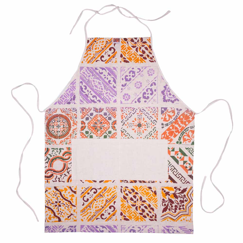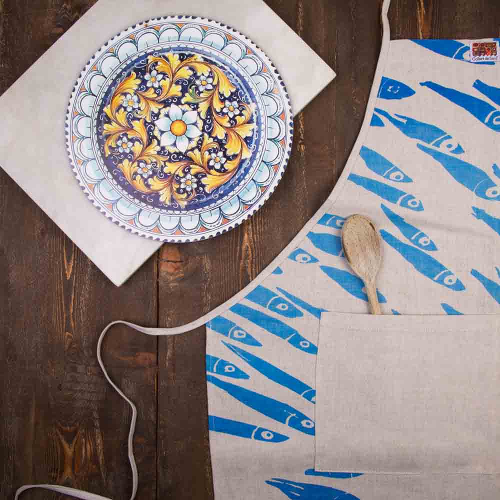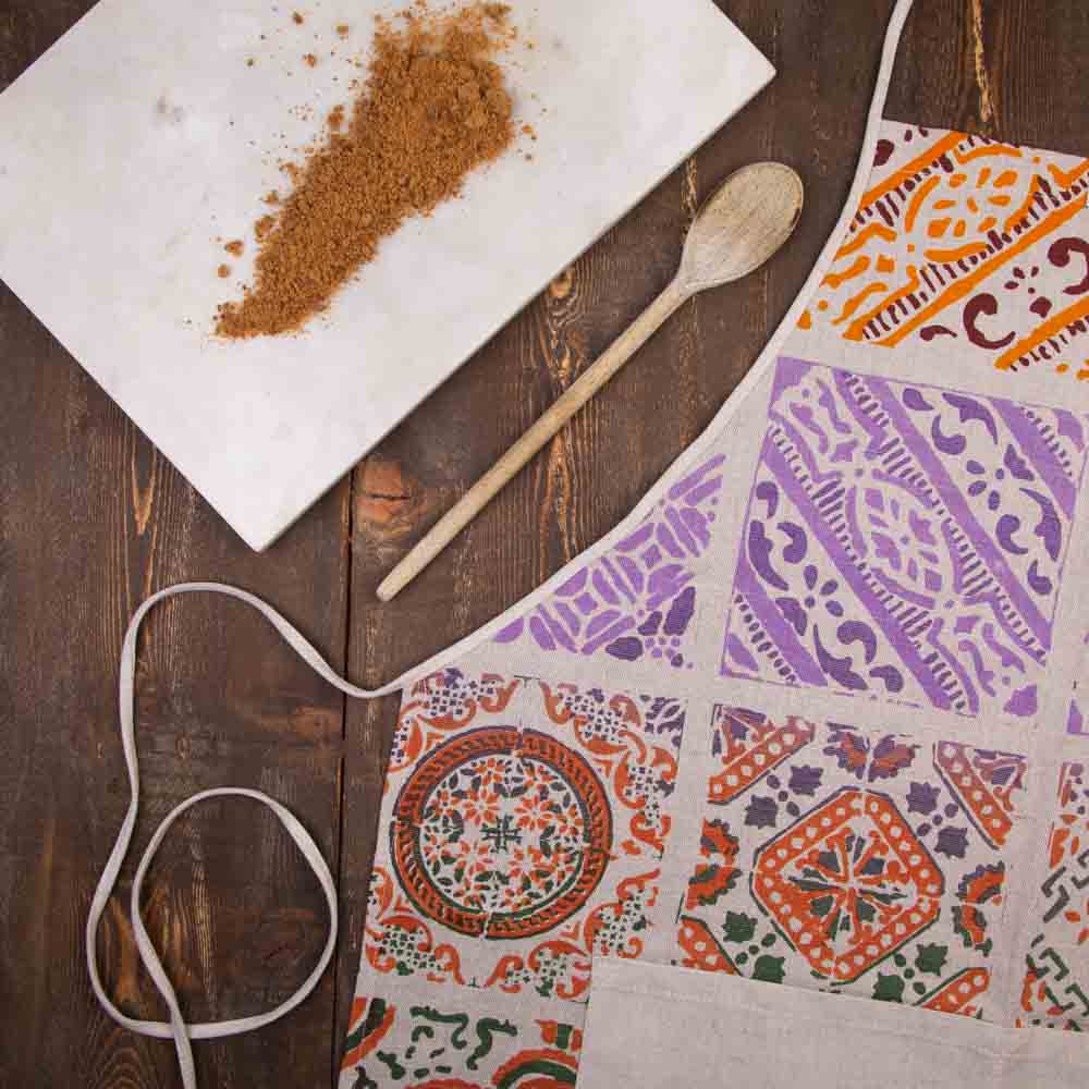 The Colori del Sole apron is a kitchen accessory that combines practicality and style in a burst of color. Made from natural fabric in a linen-cotton blend.