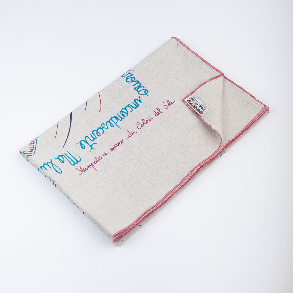 Tapestry made with hand-screened print on natural linen. The Polifemo tapestry easily hangs on the wall with a large wooden frame.