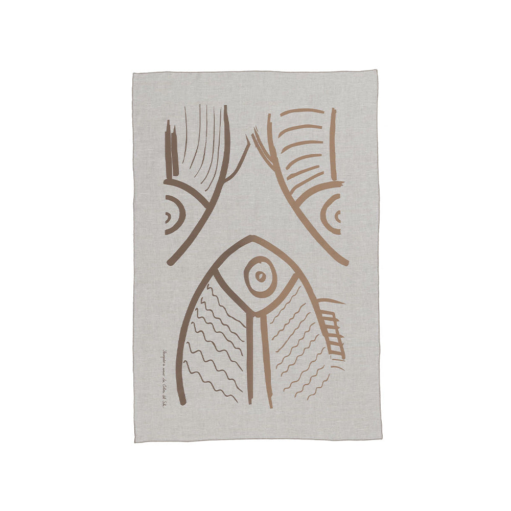 Beach towel in pure ecru linen decorated with handmade screen printing using water-based colors. Linen is particularly suitable for making beach towels thanks to its characteristics that make it a comfortable and functional accessory. Quick drying, lightweight, and minimal bulk make linen towels a must-have for days at the beach, by the pool, or in the park.