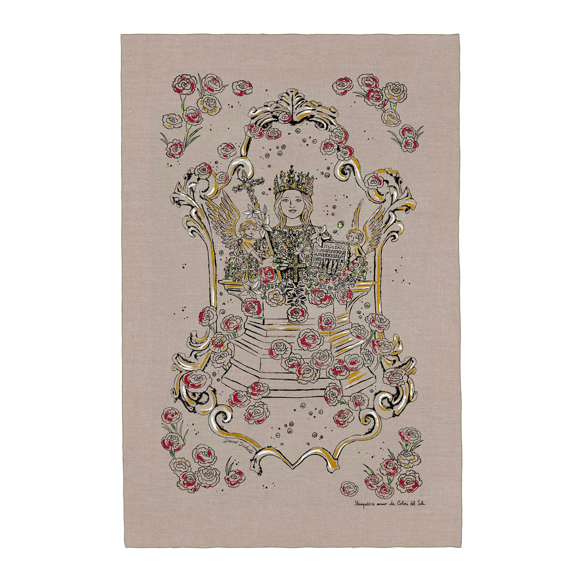 Discover the essence of Catania with our linen tapestry, a tribute to the city and its deep cultural roots. The result of careful craftsmanship, it is hand-printed on high-quality linen using the traditional screen-printing technique, enhancing every detail with elegance and precision.