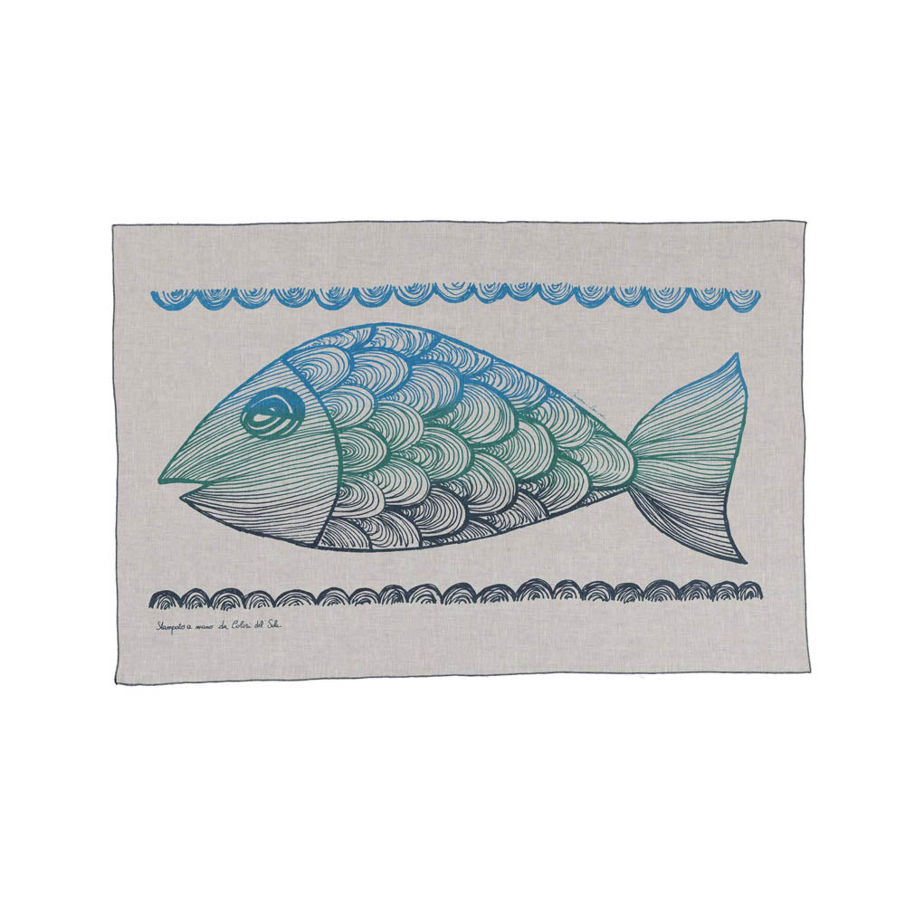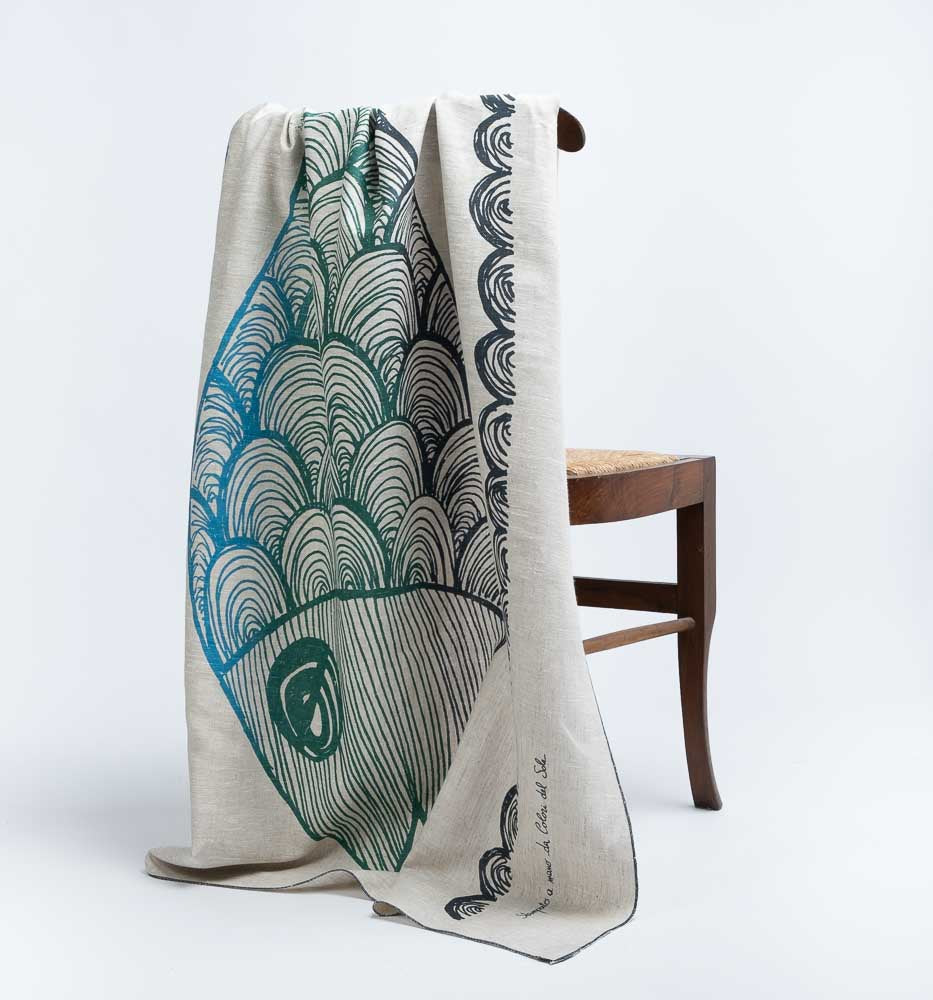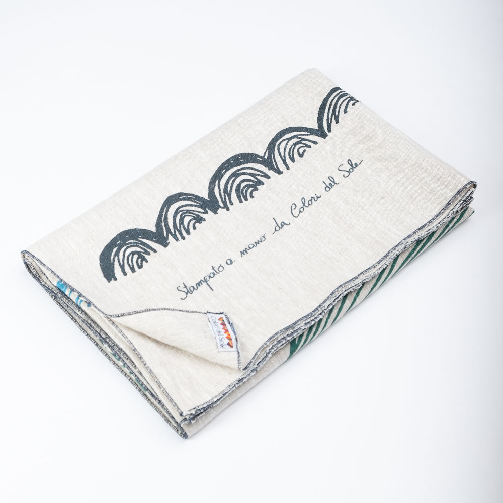 Linen beach towel decorated with handcrafted screen printing. A colorful and vibrant beach accessory produced artisanally.