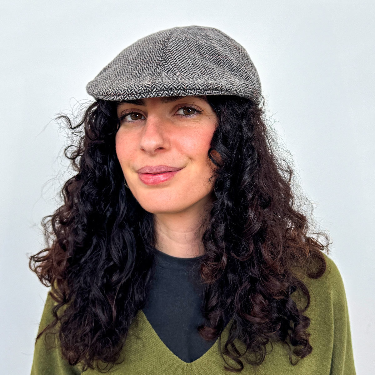Unisex Coppola in a wool blend with a herringbone pattern in shades of grey and black. A casual and versatile accessory suitable for any occasion. Available in various sizes.