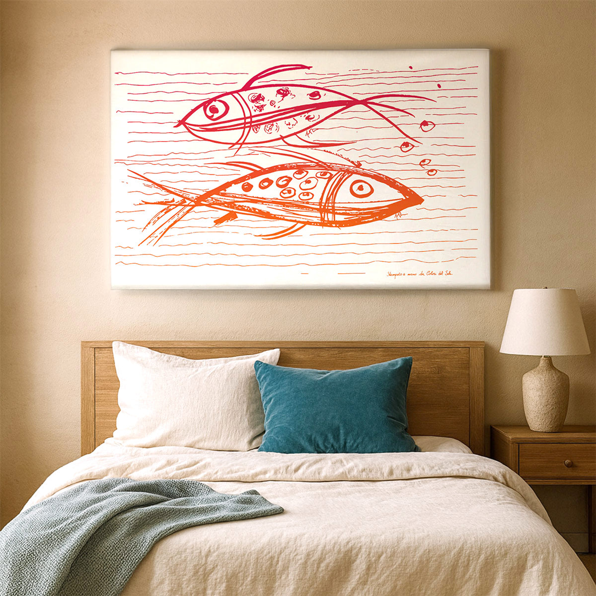 L’arazzo Sardine si appende alla parete con il telaio di legno grande.