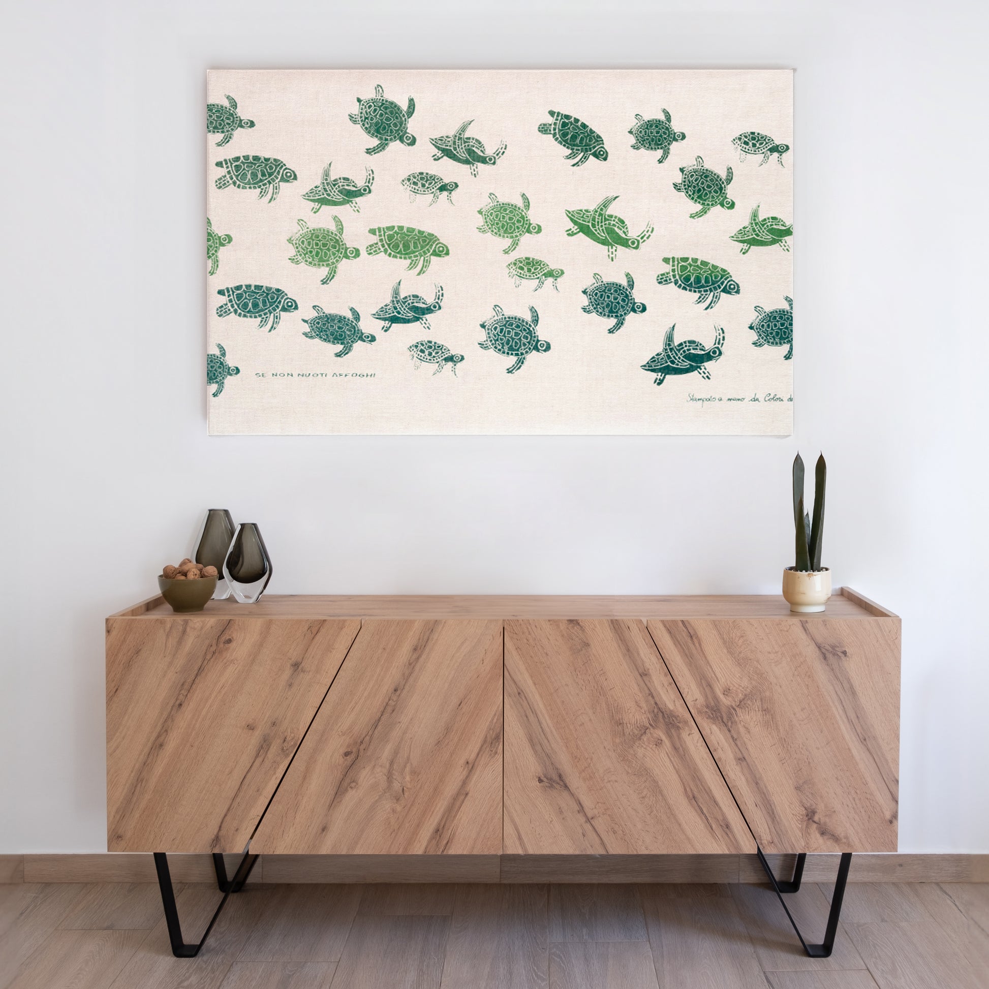 Arazzo realizzato in lino retato e stampa serigrafica manuale con tartarughe