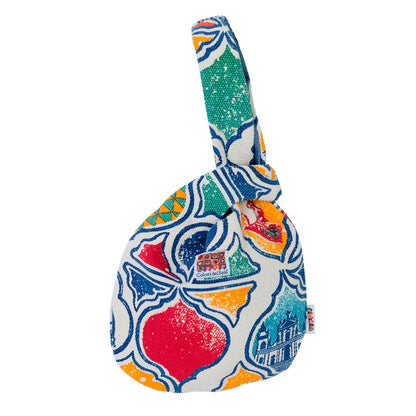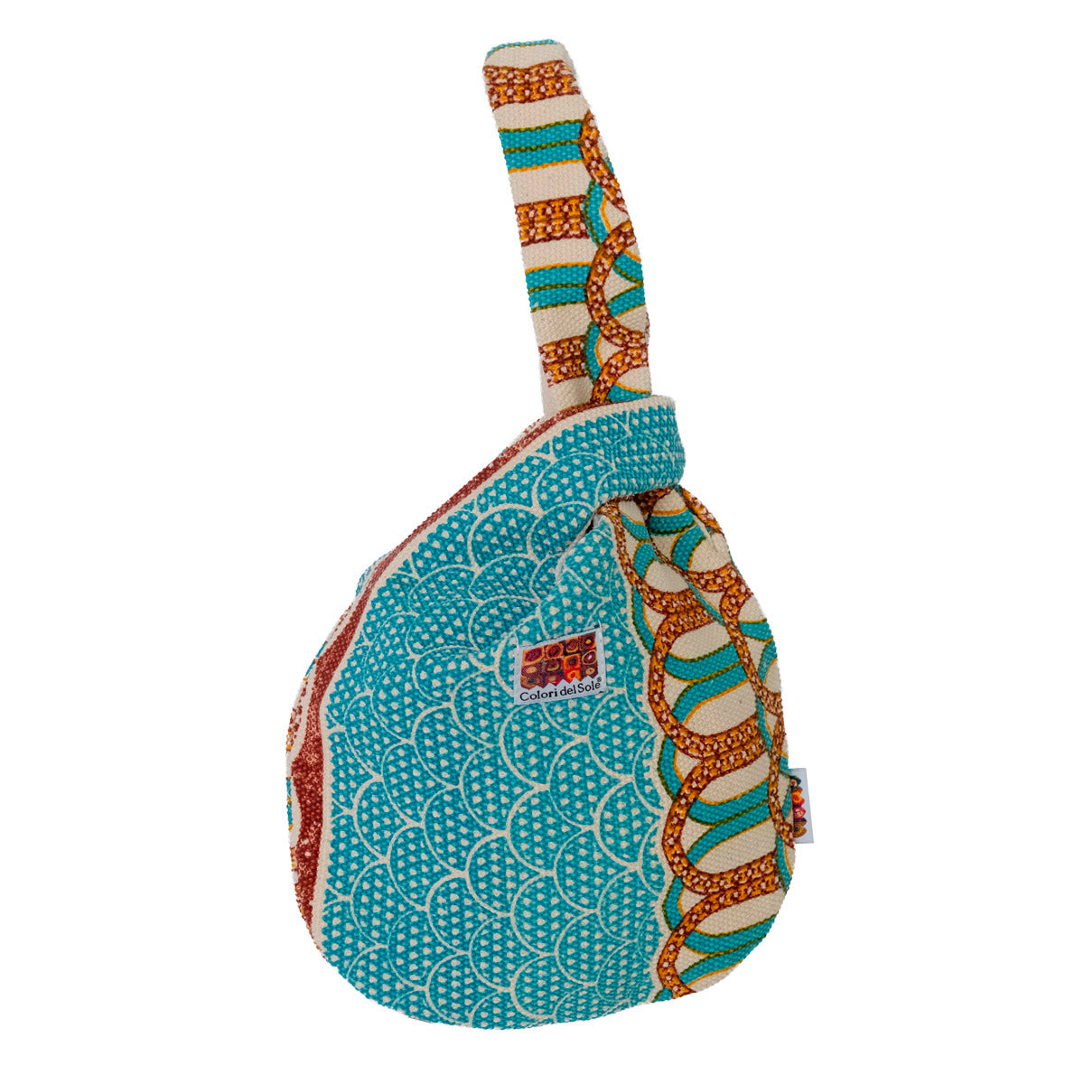 Borsa a mano di cotone decorata da stampa serigrafica manuale. Un design essenziale che non rinuncia allo stile. Adatta a qualsiasi occasione, perfetta per l'aperitivo o per aggiungere un tocco di colore ed estro ad un look semplice. Disponibile in diverse fantasie.
