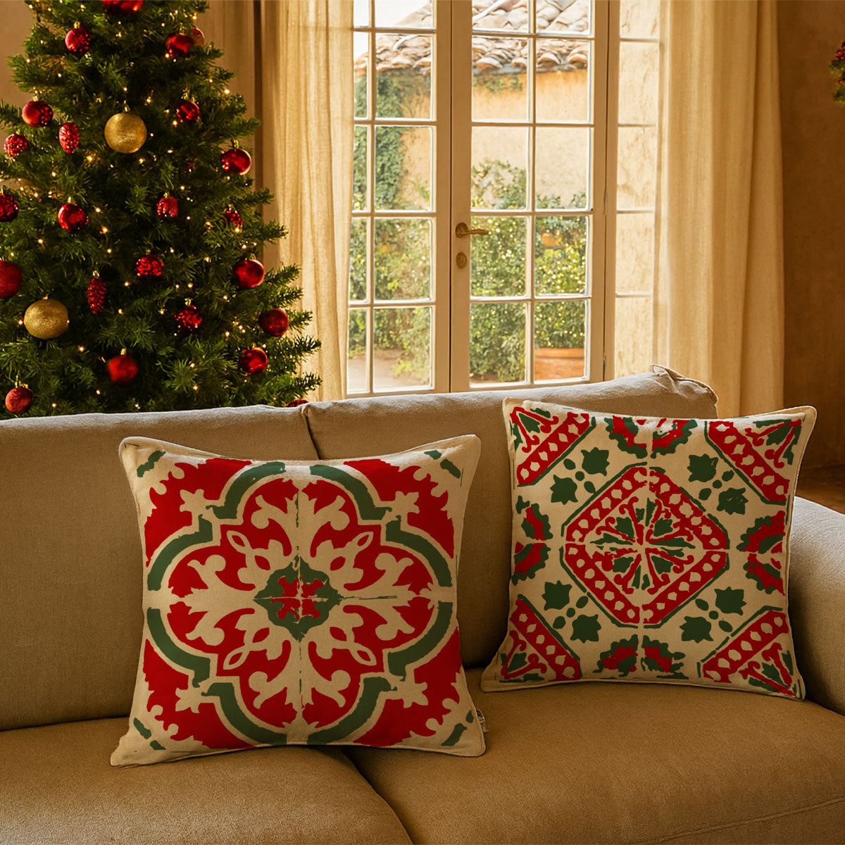 La federa Maiolica natalizia aggiunge un tocco elegante e festoso agli ambienti della casa, ideale per decorare il soggiorno o la zona pranzo durante le feste natalizie.
