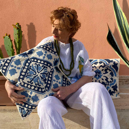 Un omaggio alle geometrie delle antiche maioliche siciliane, il cuscino Maiolica veste la casa con eleganza e tradizione. Ispirato ai cortili assolati dei borghi siciliani, racconta l’anima dell’isola attraverso il disegno delle sue antiche mattonelle. Un cuscino che non è solo arredo, ma un piccolo frammento di Sicilia da vivere ogni giorno.
