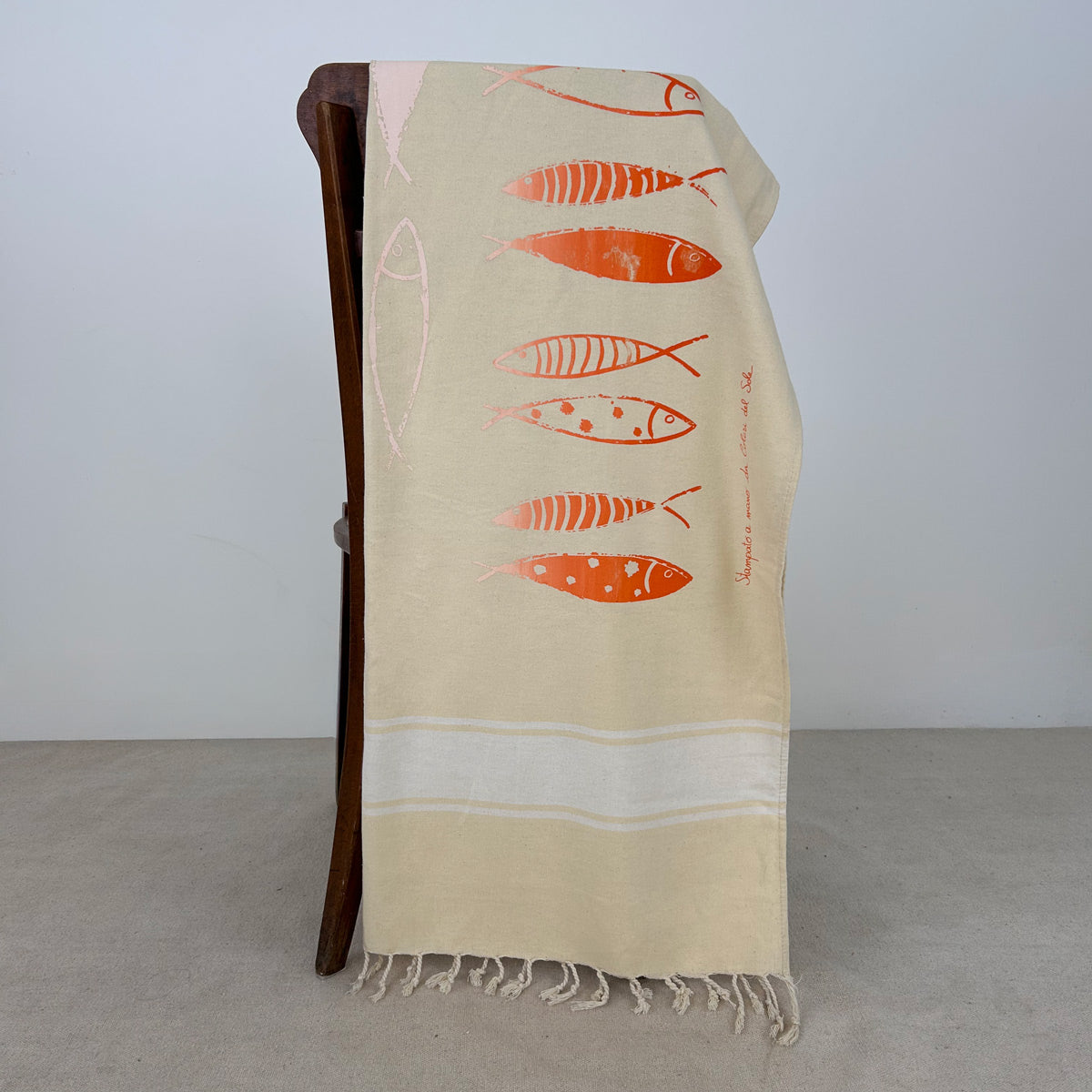 Telo mare in cotone con motivo grafico ispirato al mondo marino.