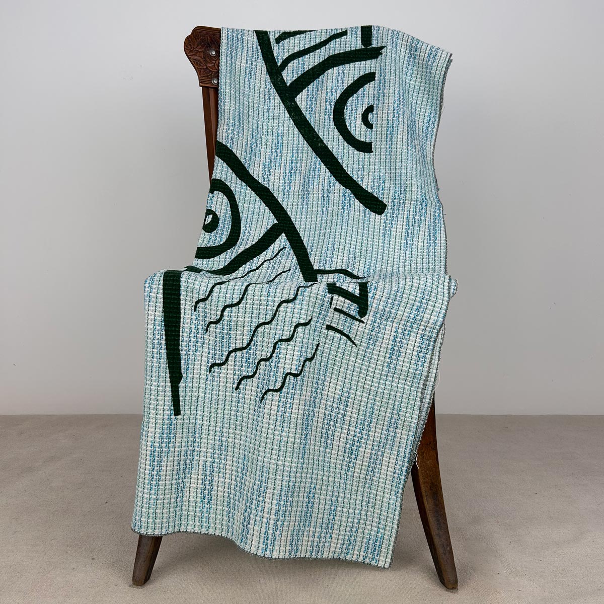 Telo mare in cotone con motivo grafico ispirato al mondo marino.