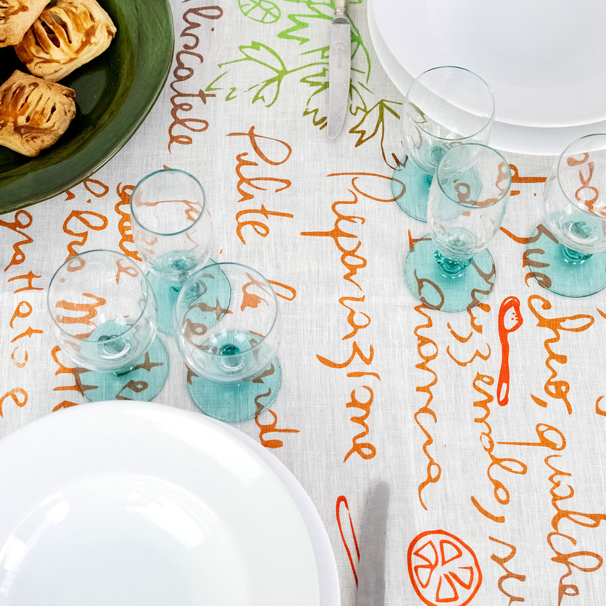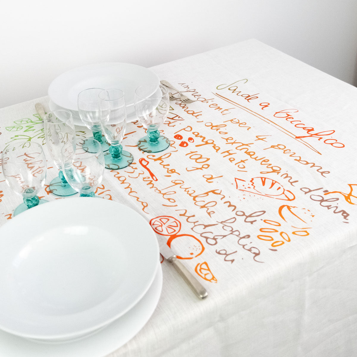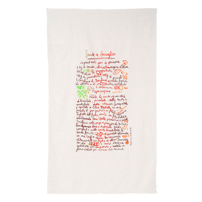 Aggiungi un tocco di tradizione siciliana alla tua tavola con questa tovaglia in lino decorata con la ricetta illustrata delle sarde a beccafico. Con il suo design artigianale e i colori vivaci, unisce estetica e funzionalità per un'apparecchiatura unica. Perfetta per chi ama lo stile mediterraneo e vuole portare in tavola un pezzo di cultura culinaria.